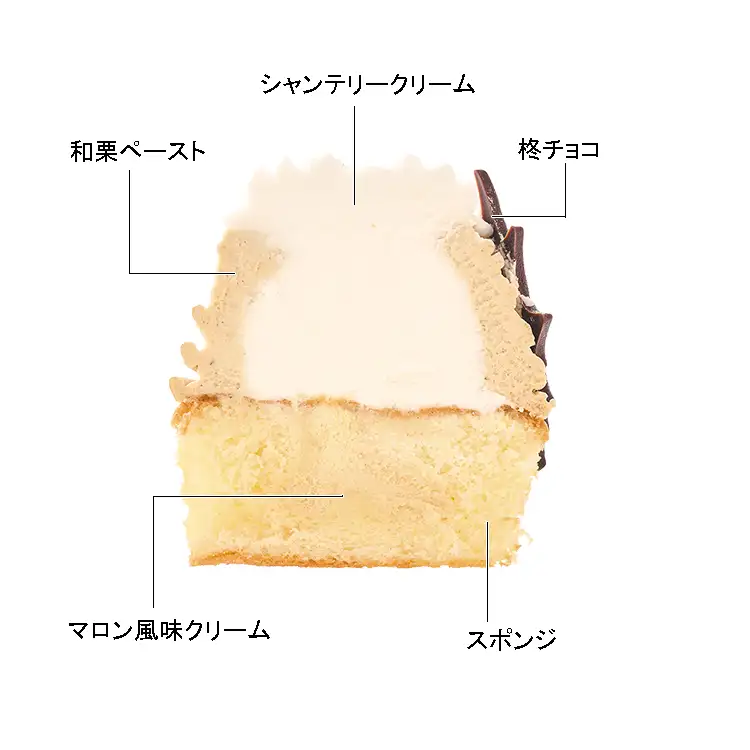 ふんわりとしたスポンジにマロン風味クリームを注入し、中心にシャンテリークリームを絞り、和栗ペーストで巻き上げました。