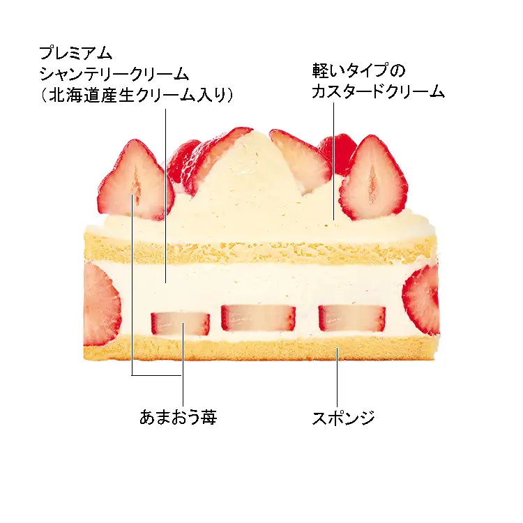 大粒あまおう苺をサンドと飾りに贅沢に使用。パーティーシーンを華やかに彩ります。