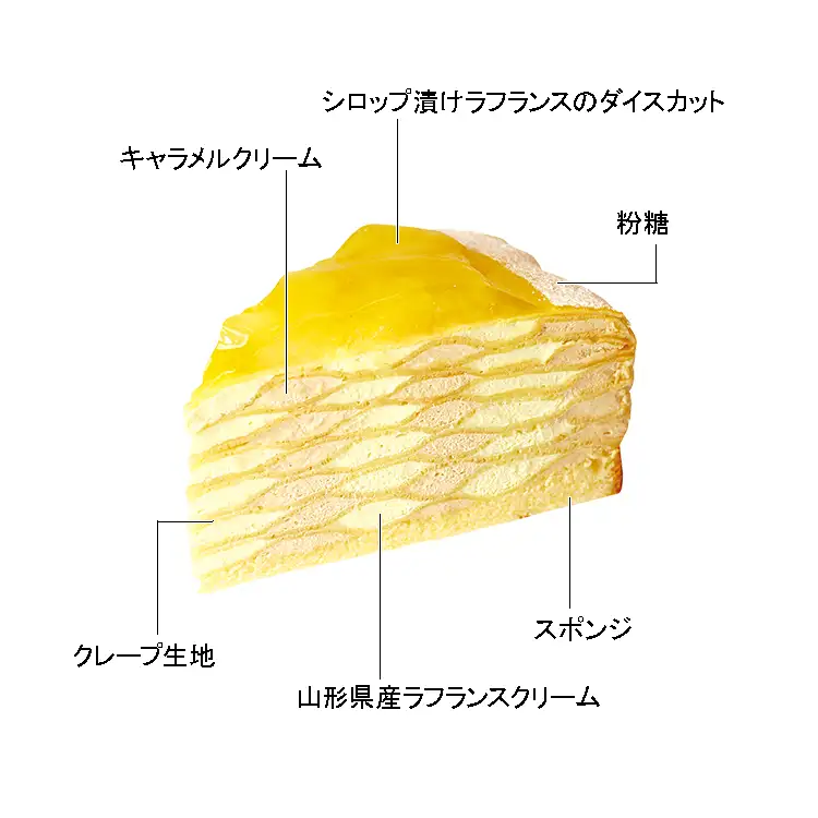 山形県産ラフランスクリームとキャラメルクリームをクレープ生地に絞り、アーガイル模様に重ねました。