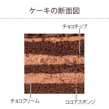 ケーキに合わせて厳選したチョコレートを使用。なめらかな味わいをお楽しみください。