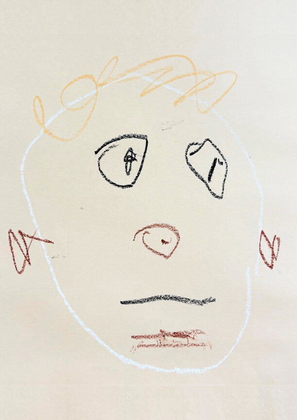 私(母)の顔を初めて描いてくれました。普段めがねをかけているので、「がんばって、めがねかいた」と言ってくれました。めがねがちゃんと耳にかけてあり、よく観察しているなぁと感心し、今回応募しました。